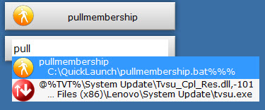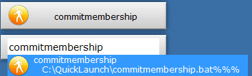 I decided to use Launchy (http://launchy.net) and I really like it so far. It’s made a big difference in speeding up many of my frequent tasks. It’s really easy to use as well and comes with some nice extensions (they call them plug-ins). The Runner plug in allows you to create custom aliases for frequent tasks. Combine this with batch or powershell scripts and it becomes a fairly powerful way of quickly running frequent tasks. As an example, I set up aliases for frequent Hg source control commands on my most frequently used repositories. So I can use commands like pushreponame, pullreponame, commitreponame, and workbenchreponame to quickly perform these tasks without ever taking my hands from the keyboard or even opening a command prompt window. It uses predictive text in this field so it usually finds the right command well before I finish typing it: