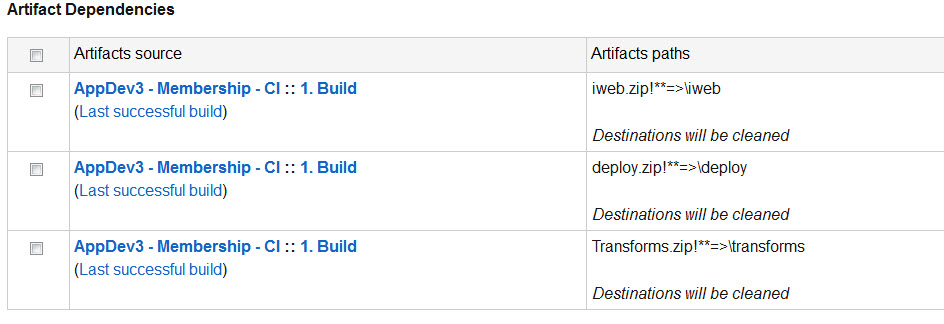As you can see in the image above, we need to be sure to depend on the three artifacts we created in our original build and package configuration.